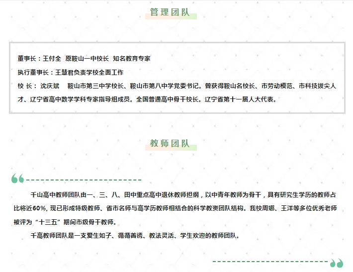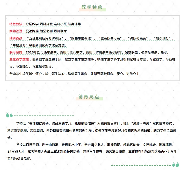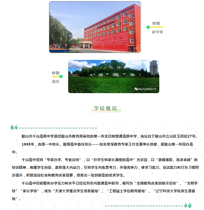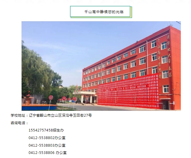 鞍山市千山高級(jí)中學(xué) 激爆潛能 追求卓越 低進(jìn)高出 優(yōu)進(jìn)精出