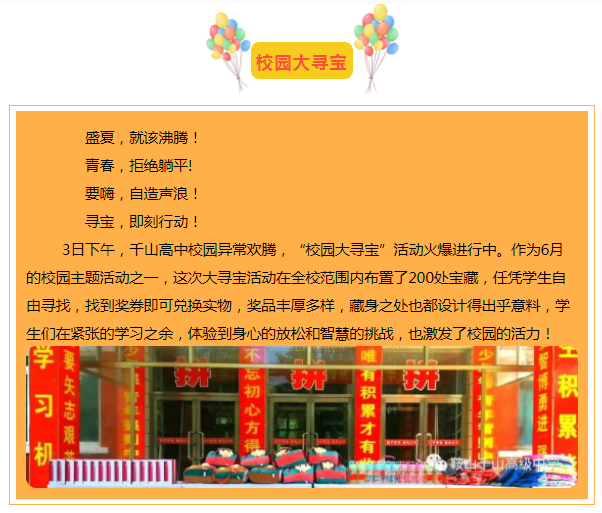 666!校園嗨翻天,寶藏在身邊! ——千山高中“校園大尋寶”活動進(jìn)行時