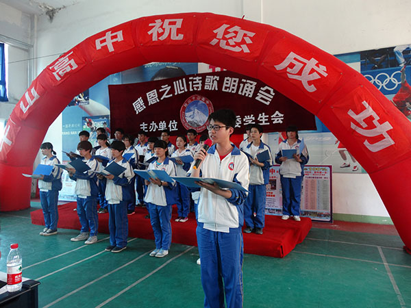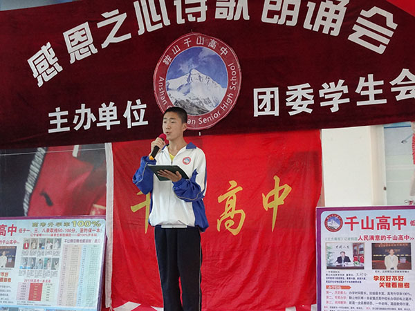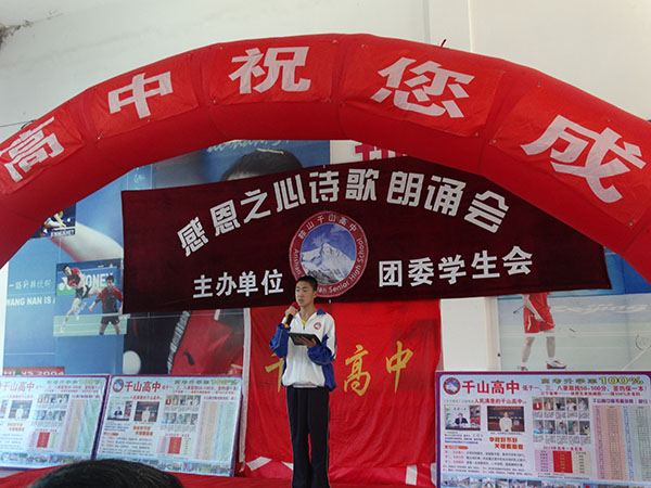 5月30日,千山高中舉辦了“感恩之心”-詩(shī)歌朗誦比賽,各班代表發(fā)揮文學(xué)創(chuàng)作的高超水平,用真摯、充沛的激情抒發(fā)了對(duì)父母、老師、祖國(guó)的熱愛(ài)!賽場(chǎng)上時(shí)而掌聲如雷、時(shí)而只能聽(tīng)到選手的心聲。二年五班團(tuán)體、二年四班魯晨同學(xué)從激烈的競(jìng)爭(zhēng)中脫穎而出,以近乎滿分獲得了冠軍!