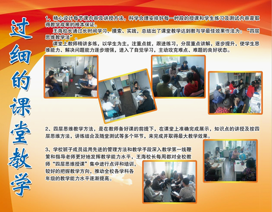 隨后,教務(wù)處孫主任就關(guān)于我校教育教學(xué)特色向觀摩檢查組作了匯報(bào)。在此次匯報(bào)中,孫主任分別從我校嚴(yán)格的教學(xué)管理、過(guò)細(xì)的課堂教學(xué)、疏而不漏的教學(xué)檢驗(yàn)以及縝密的成績(jī)分析四個(gè)方面做了詳細(xì)的說(shuō)明,同時(shí)闡述了我校未來(lái)的發(fā)展目標(biāo)——砥礪前行,穩(wěn)健發(fā)展。