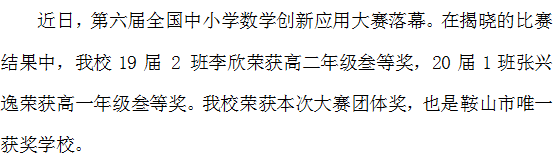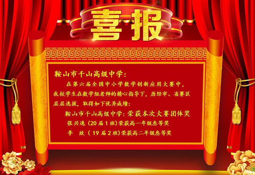 喜 報! 鞍山市千山高級中學在第六屆全國中小學數(shù)學創(chuàng)新應(yīng)用大賽中喜獲佳績!