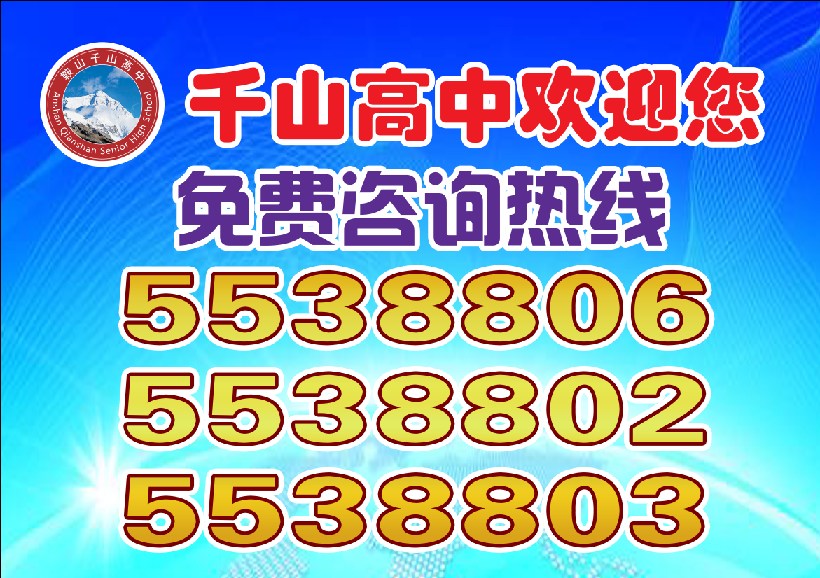 雖然此次公益活動即將結(jié)束,但鞍山千山高級中學(xué)對社會各界的感謝不會停止,感恩的心情永駐心間。為此我校開設(shè)免費咨詢電話——5538806、5538802、5538803。同學(xué)們,如果你在求學(xué)的道路上有什么疑惑;家長們,如果你在孩子的教育方面有什么困惑,都可以隨時撥打電話。您將免費獲得我校的幫助,我們?nèi)w老師將竭誠為您服務(wù)。歡迎各位學(xué)生和家長撥打千山高級中學(xué)免費咨詢電話——5538806、5538802、5538803。