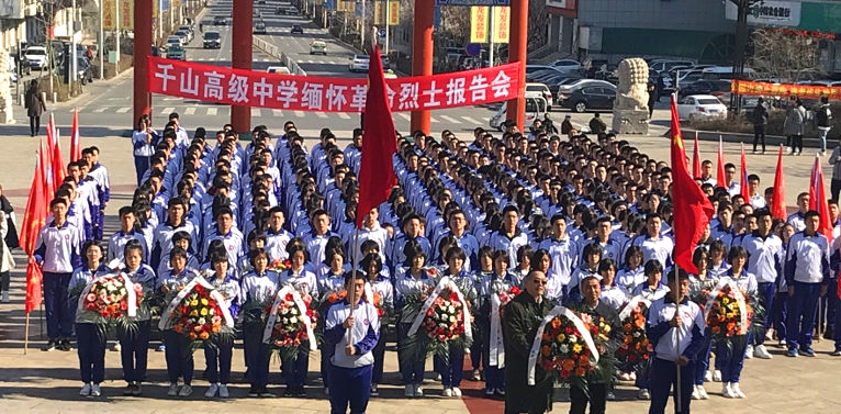 201941日上午8時(shí),鞍山千山高中全體同學(xué)懷著對(duì)烈士無限崇敬的心情來到鞍山市烈士山英雄紀(jì)念碑前,向革命先烈敬獻(xiàn)花環(huán)。