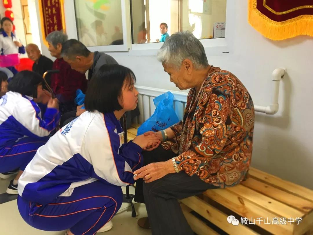 大家圍坐在老人們身邊,給他們講述敬老院外面的世界,講千山高中的發(fā)展,講千山高中豐富多彩的生活。老人們也打開了話匣子,主動為同學(xué)們講述了自己的往昔歲月,以及對現(xiàn)如今晚年生活的感慨……