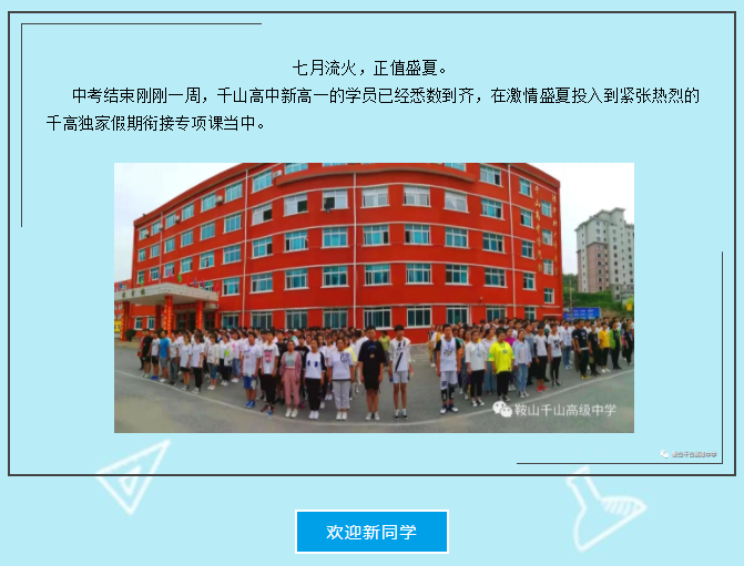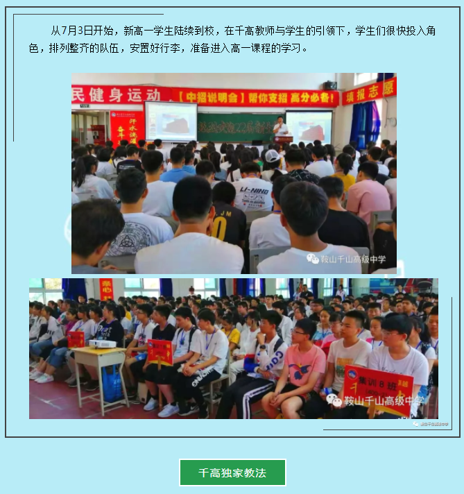招生專欄MORE>> ■鞍山市千山高級中學(xué) 激爆潛能 追求卓越 低進(jìn)高出 優(yōu)進(jìn)精出 ■鞍山日報(bào)、北方晨報(bào)記者報(bào)道---千山高中因材施教見成效
