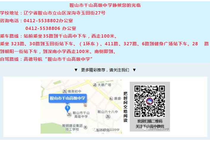 • 學校地址:遼寧省鞍山市立山區(qū)深溝寺玉田街27號