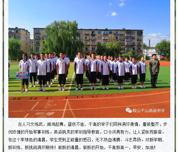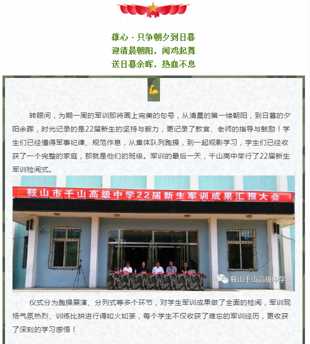 秋高氣爽當(dāng)展翅,軍歌嘹亮心飛揚(yáng) ——記千山高中22屆新生軍訓(xùn)生活