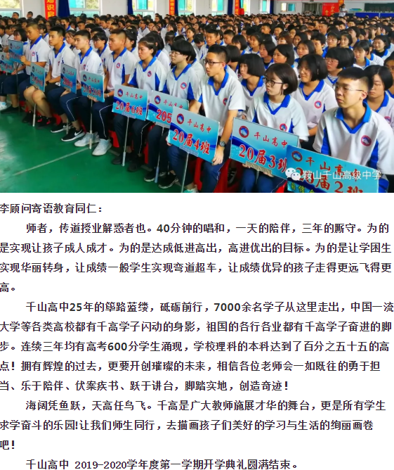 秋高氣正爽,御風(fēng)新起航 ——千山高中開(kāi)學(xué)典禮隆重舉行