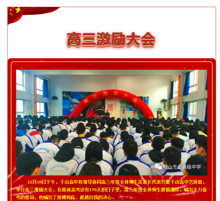 懷美好夢想 攀人生高峰---千山高中高三激勵(lì)大會(huì)喊出夢想,點(diǎn)燃寒冬
