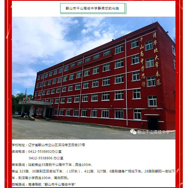 • 學(xué)校地址:遼寧省鞍山市立山區(qū)深溝寺玉田街27號
