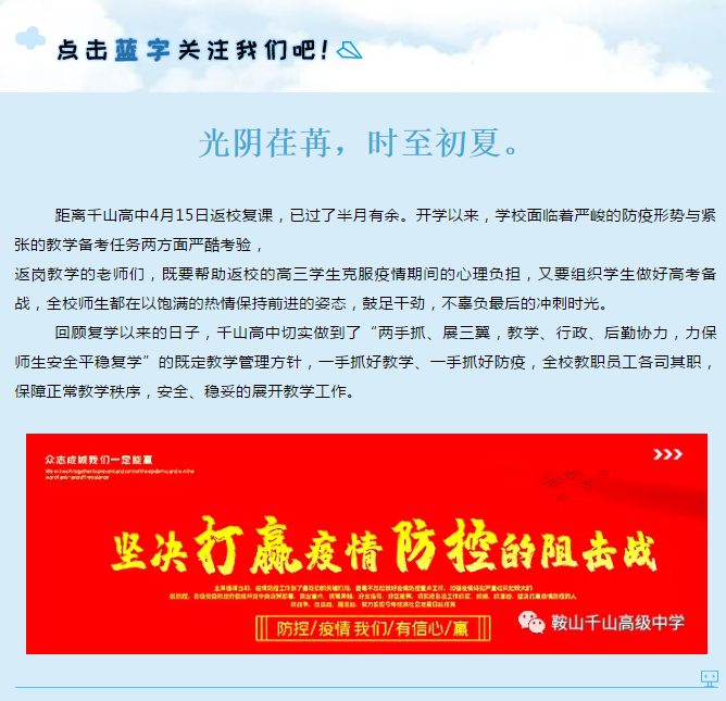 后浪逐夏潮,前行揚勁帆 ——千山高中防疫復學手記