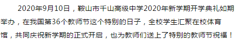 氣勢昂揚新起點,歌聲悠揚感師恩——千山高中新學(xué)期開學(xué)典禮暨教師節(jié)活動圓滿舉行