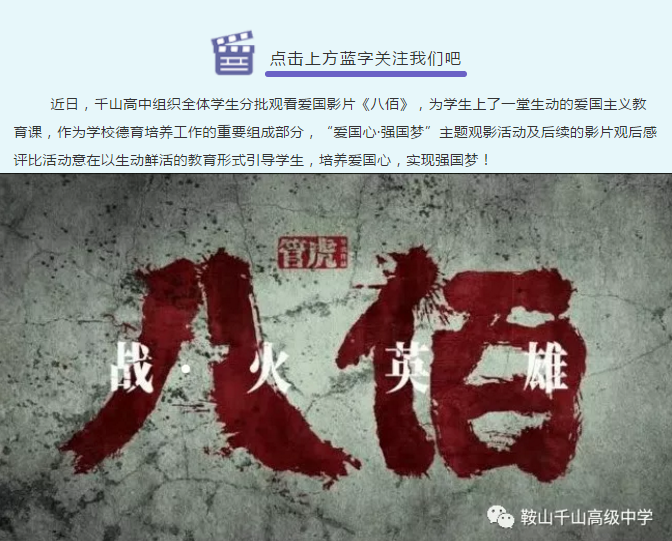 千山高中“愛國心?強(qiáng)國夢”主題觀影活動(dòng)紀(jì)實(shí)