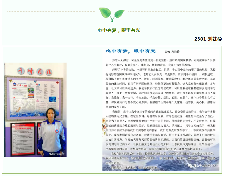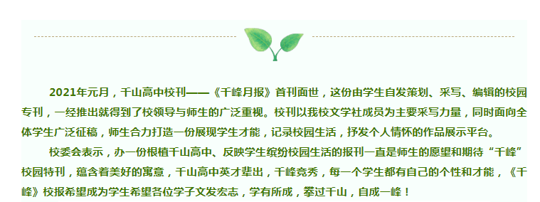 鞍山市千山高級中學(xué)---《千峰·月報》??ρ麑W(xué)子“登峰造極”