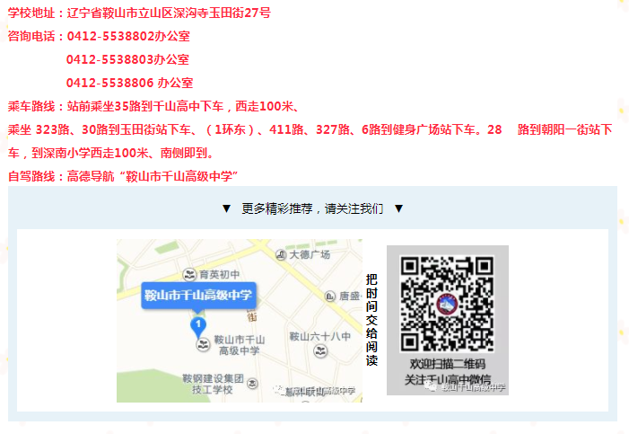 • 學(xué)校地址:遼寧省鞍山市立山區(qū)深溝寺玉田街27號