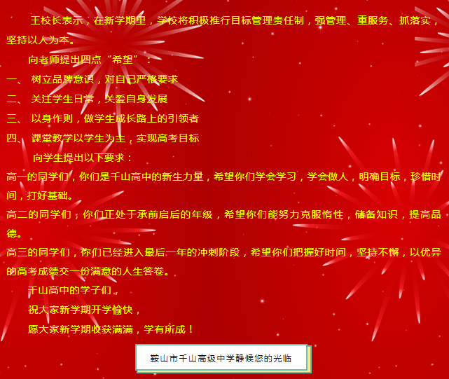 氣勢昂揚(yáng)新起點(diǎn)——千山高中2021-2022學(xué)年度第一學(xué)期開學(xué)典禮圓滿舉行