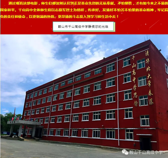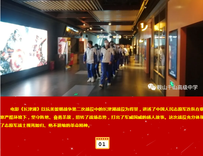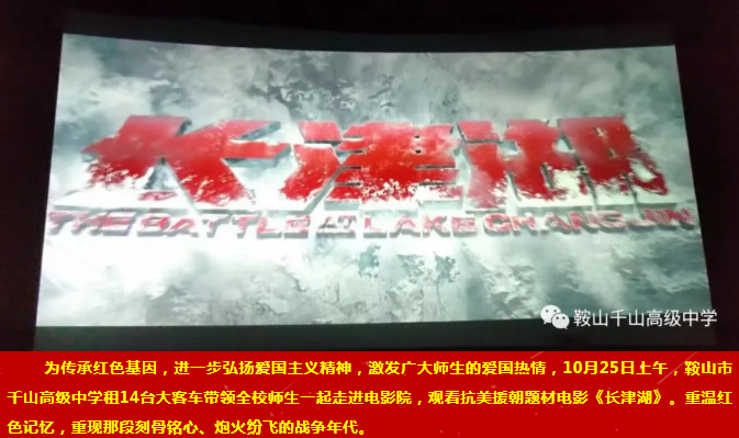重溫紅色記憶,堅(jiān)定理想信念——鞍山市千山高級(jí)中學(xué)包場(chǎng)組織全校師生觀看《長(zhǎng)津湖》2021年10月26日 1274次 ←上一頁(yè) 返回前頁(yè) 下一頁(yè)→