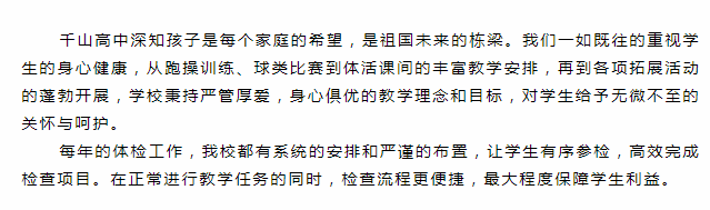 展現(xiàn)千高嚴(yán)管厚愛(ài) 護(hù)佑學(xué)生身心健康 ——全校學(xué)生體檢