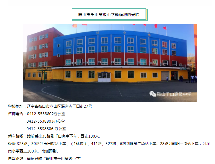 • 學(xué)校地址:遼寧省鞍山市立山區(qū)深溝寺玉田街27號