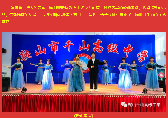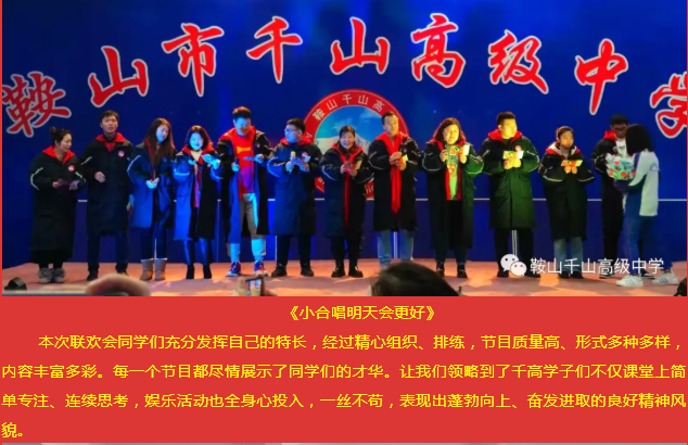 文藝匯演展風采,舞動青春夢飛揚——鞍山市千山高級中學辭舊迎新聯(lián)歡會