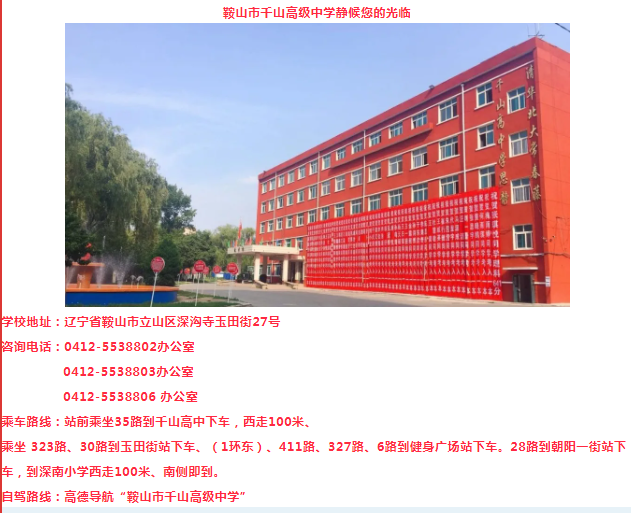 • 學校地址:遼寧省鞍山市立山區(qū)深溝寺玉田街27號