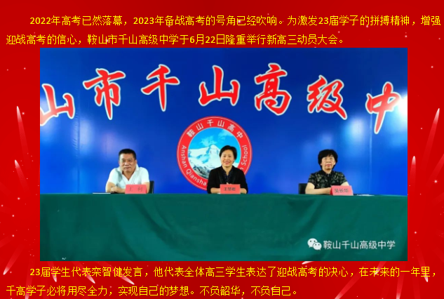 乘風(fēng)破浪,鴻鵠展翅——千山高中23屆學(xué)子激勵大會