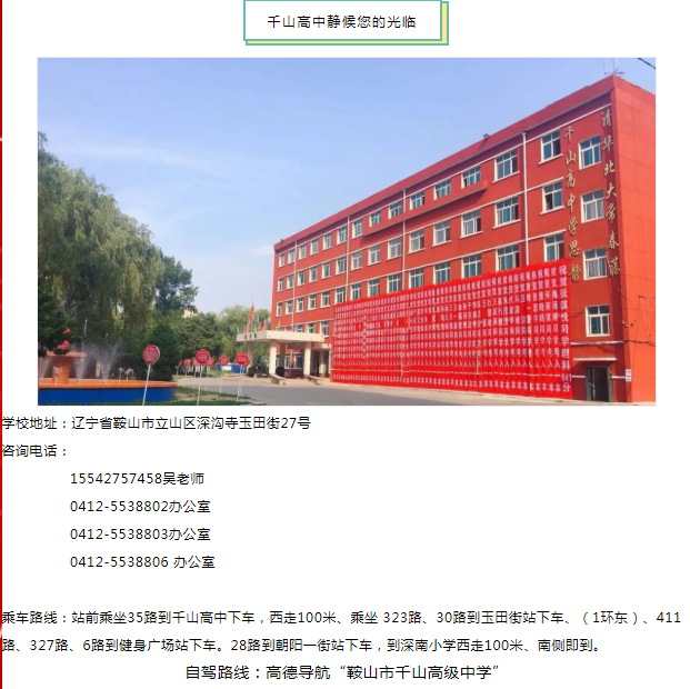 • 學(xué)校地址:遼寧省鞍山市立山區(qū)深溝寺玉田街27號