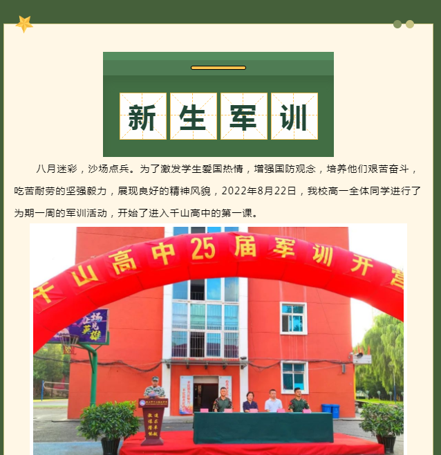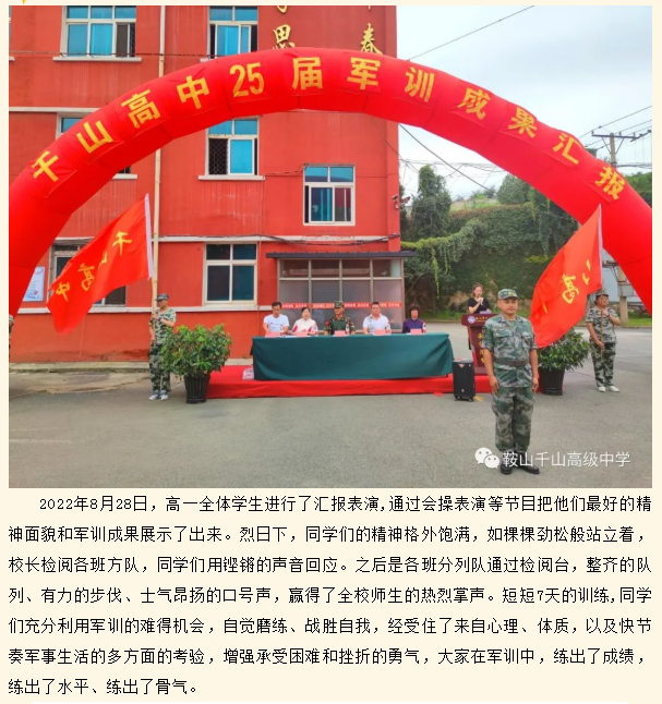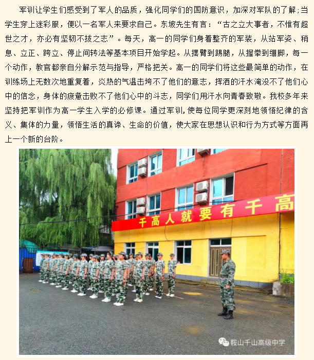 磨意志堅(jiān)定信心 灑汗水致敬青春——鞍山市千山高中高一軍訓(xùn)