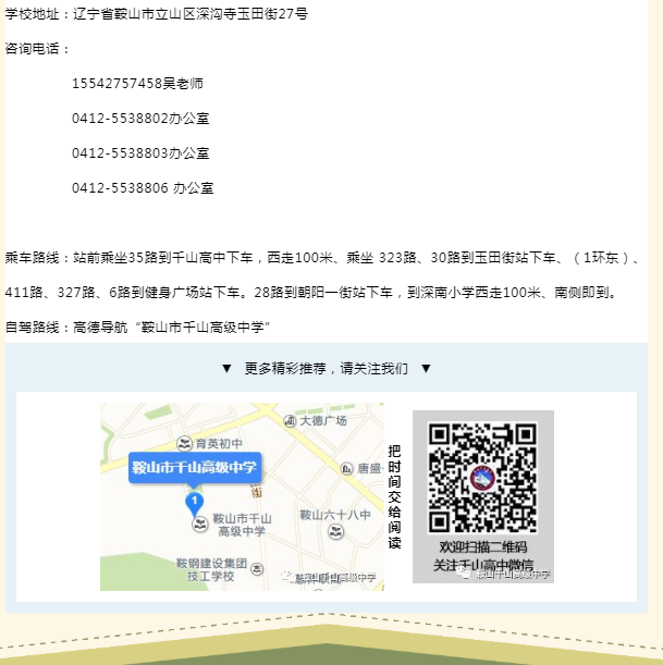 • 學(xué)校地址:遼寧省鞍山市立山區(qū)深溝寺玉田街27號(hào)