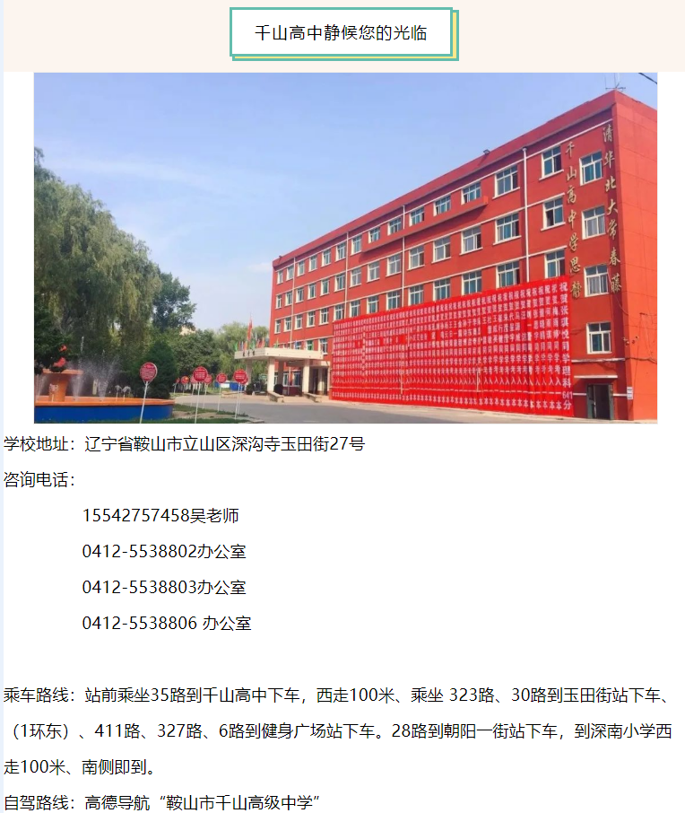 • 學(xué)校地址:遼寧省鞍山市立山區(qū)深溝寺玉田街27號(hào)