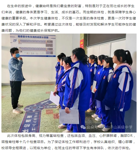 鞍山市千山高級(jí)中學(xué)-----體檢護(hù)航,健康相伴
