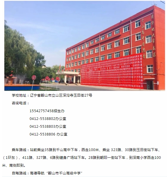 • 學(xué)校地址:遼寧省鞍山市立山區(qū)深溝寺玉田街27號(hào)