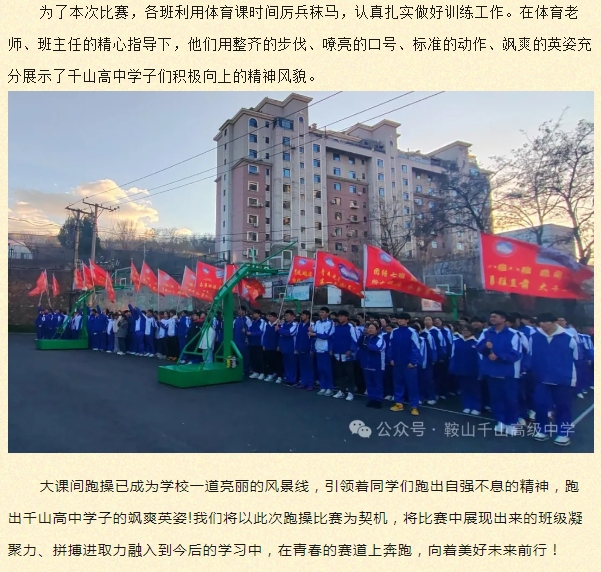 激情跑操燃斗志 自強不息展風采——鞍山市千山高級中學跑操比賽