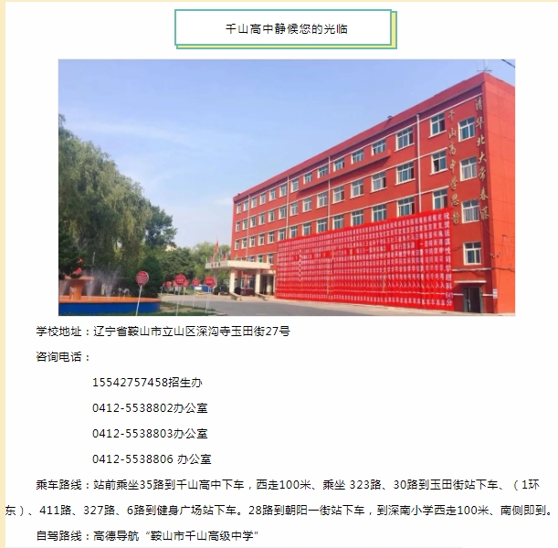 • 學(xué)校地址:遼寧省鞍山市立山區(qū)深溝寺玉田街27號