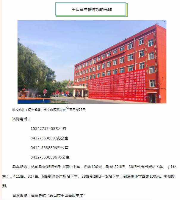 • 學(xué)校地址:遼寧省鞍山市立山區(qū)深溝寺玉田街27號(hào)