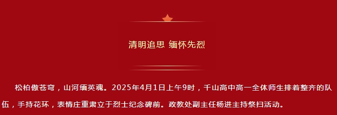 清明追思英烈志 薪火相傳勇?lián)?dāng)——千山高中開展清明祭掃活動(dòng)