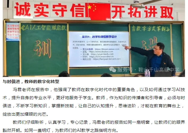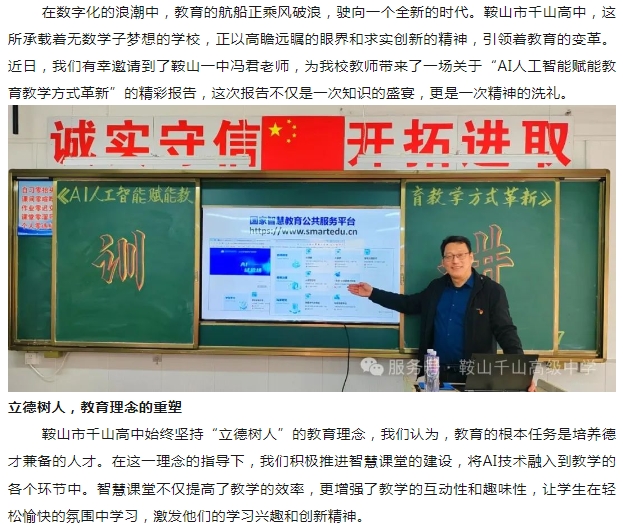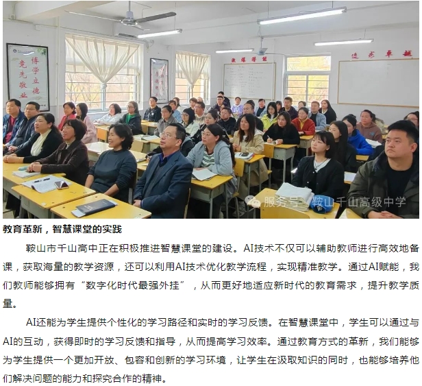 鞍山市千山高級中學---數(shù)字時代開啟杏壇新風 人工智能助力課堂革新