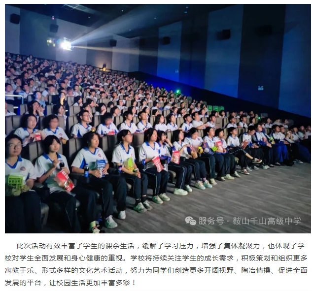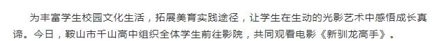 歡樂觀影,收獲成長——鞍山市千山高中《新馴龍高手》觀影