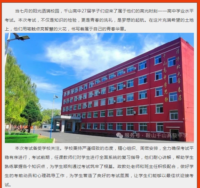 暖心送考 助力啟航——千山高中教師赴考點(diǎn)為27屆學(xué)子護(hù)航