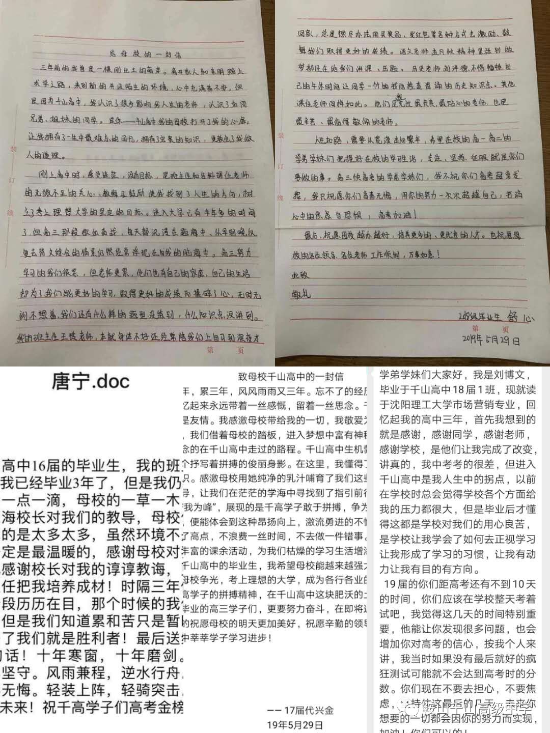 六月艷陽天,高考在眼前。還有3天就要高考,鞍山市千山高中部分往屆畢業(yè)生,紛紛給即將征戰(zhàn)高考的學弟學妹們送來了祝福和寄語……