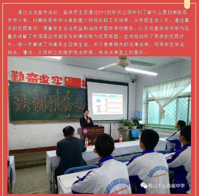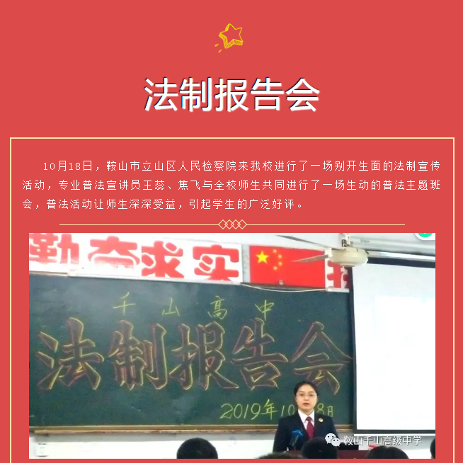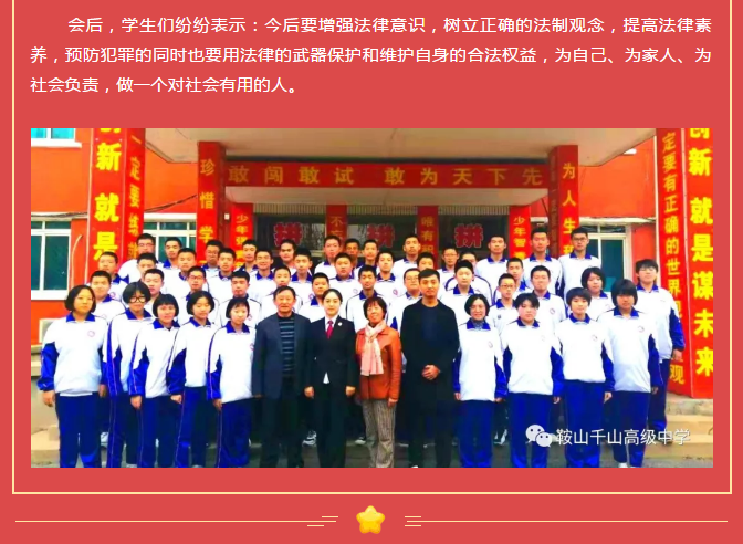 鞍山市千山高級(jí)中學(xué)----法制宣傳進(jìn)校園,學(xué)法懂法好青年